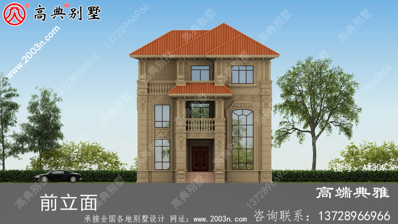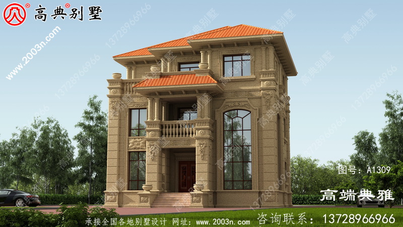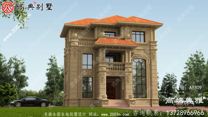 带露台的欧式石材三楼农村别墅设计图纸,农村住宅建设与时俱进,传统老民居早就应淘汰,现在农村已经开始建设洋馆别墅,建设奢华大气