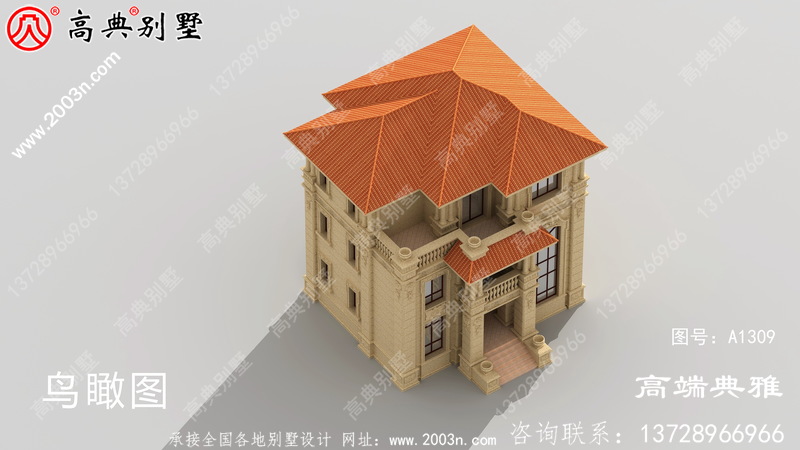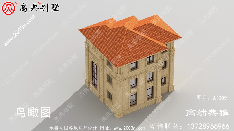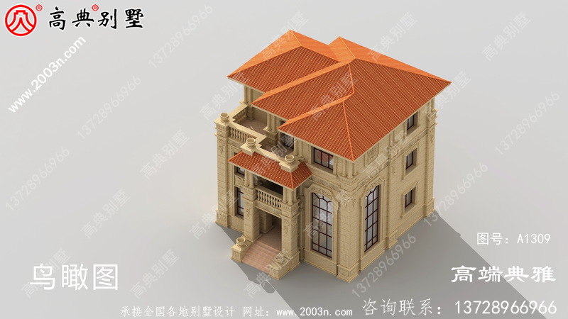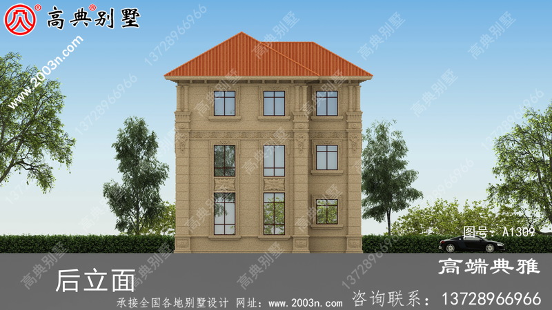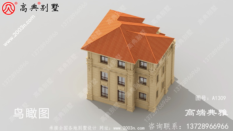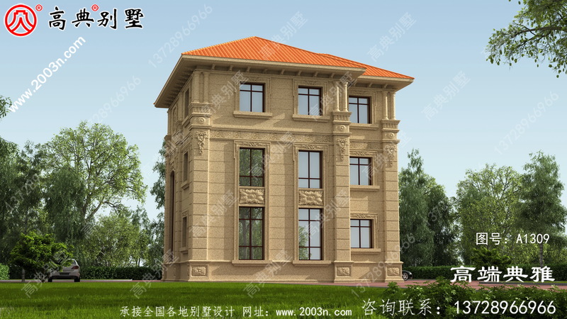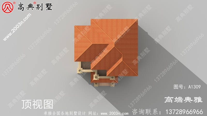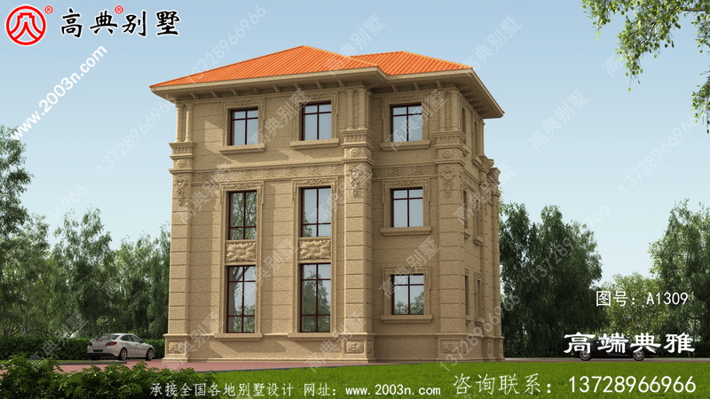 A1309号别墅外墙主要材料:310X310 S瓦、荔枝面永定红石材