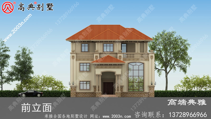 大户型欧式三层新农村住宅设计图及效果图,占地168平
