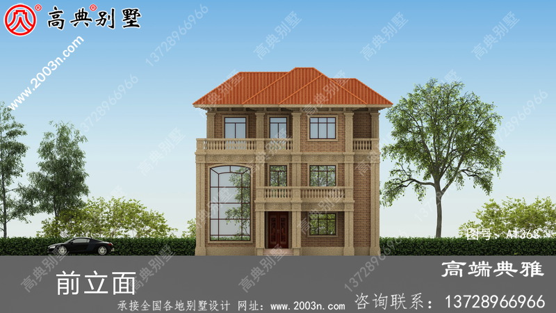 高端欧式复式设计三层别墅外观设计效果图,106平方米的新农村简约欧式三层别墅效果图,带复式设计,整套图纸采用大量欧式设计元素,使外观非常优雅