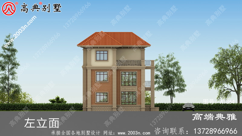 最新欧式三层乡村别墅设计图纸,适合乡村建造,107平方米的新农村简单的欧式三层住宅别墅的效果图,带露台设计,图纸整体采用了许多欧式设计要素,外观十分优雅。