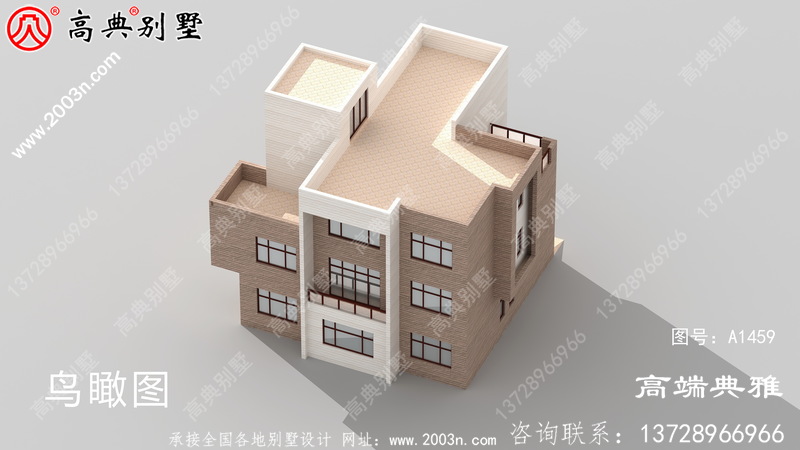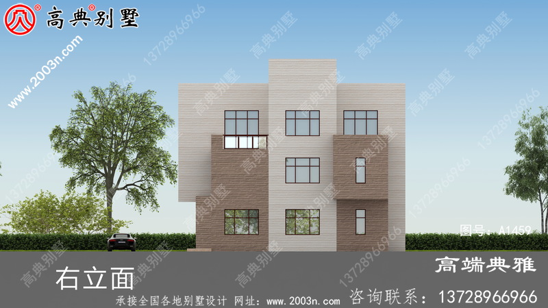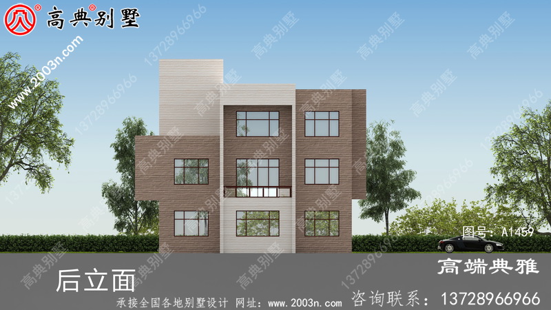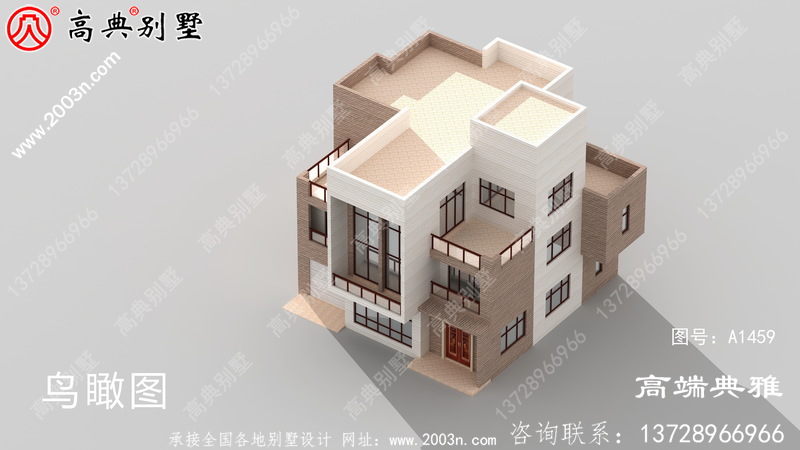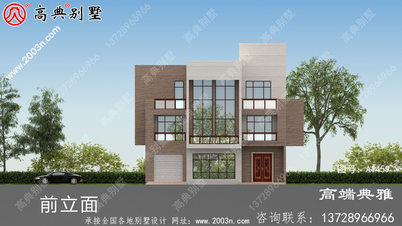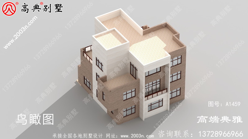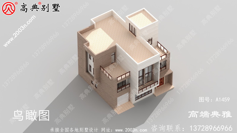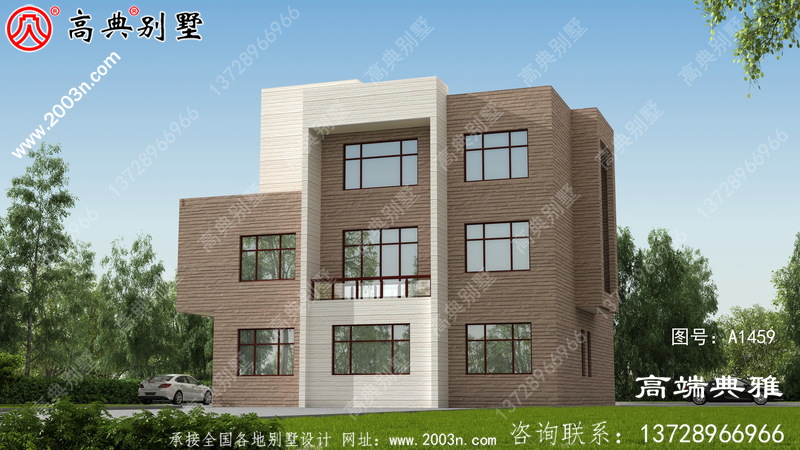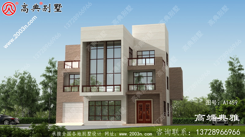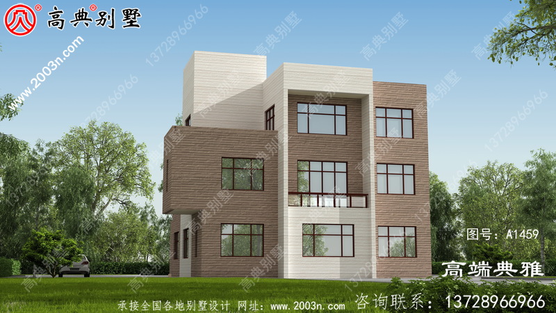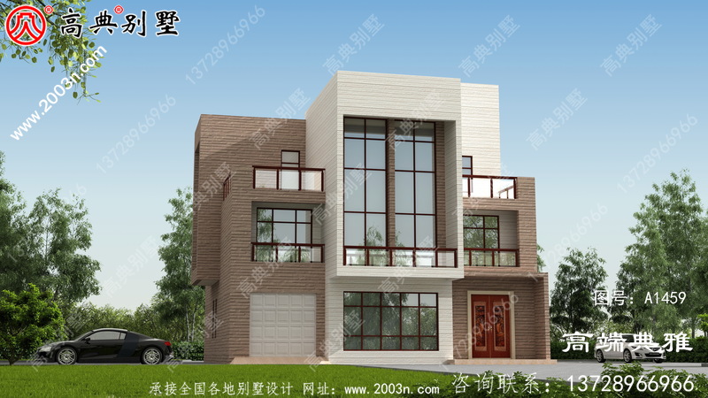 A1459号别墅外墙主要材料:日吉华外墙砖、铁艺栏杆、玻璃栏杆