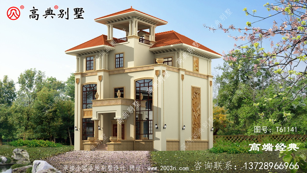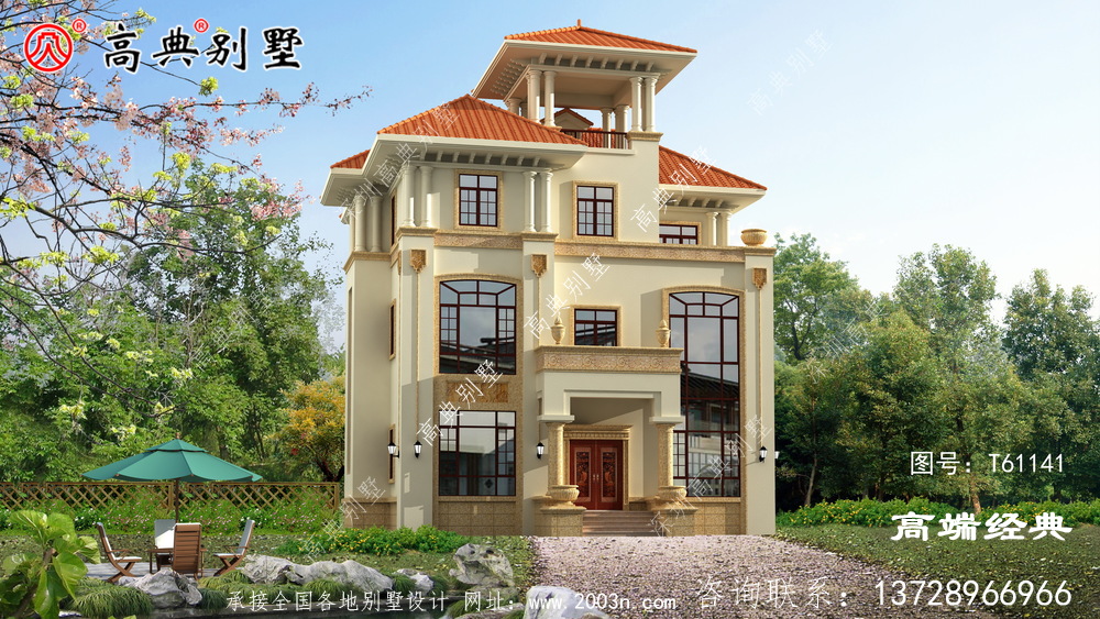 三楼比较安静,最适合设置书房。孩子读书学习,可以保证质量。露台空间大,种植花草树木,营造空中花园,充满活力,增强视觉效果。