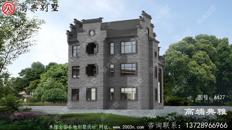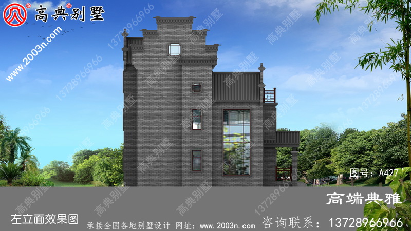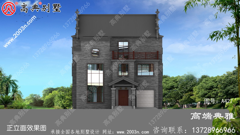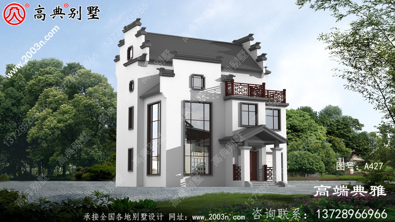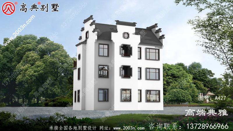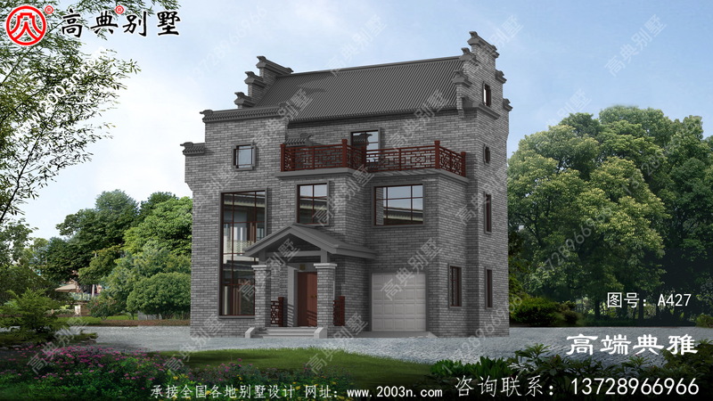 新中式三层别墅设计图,大客厅中空,占地面积148平方米