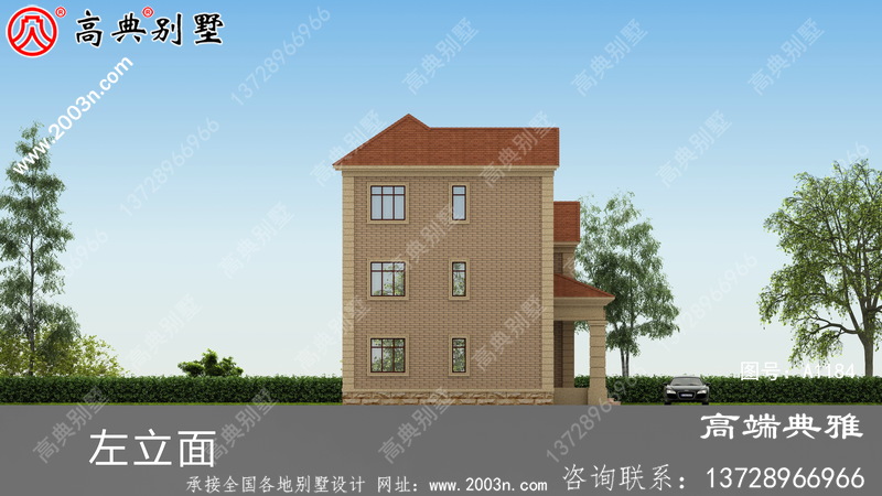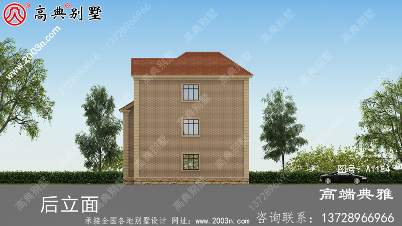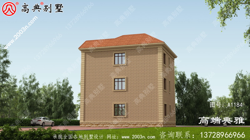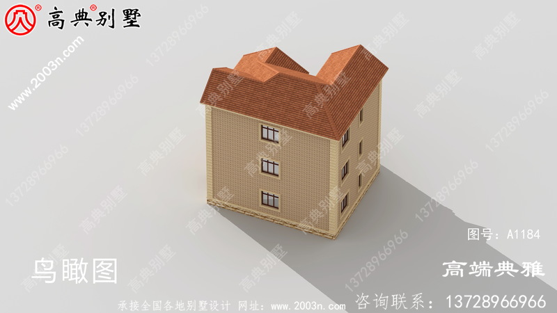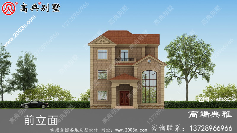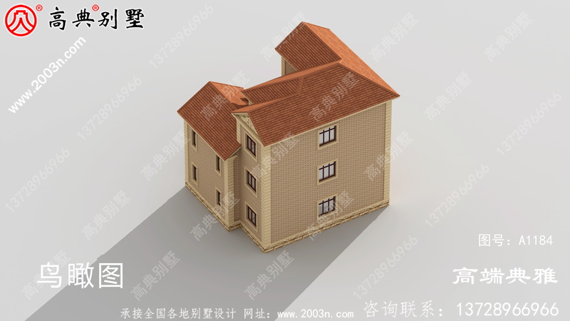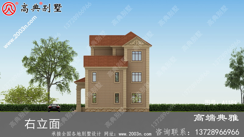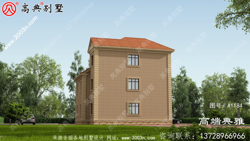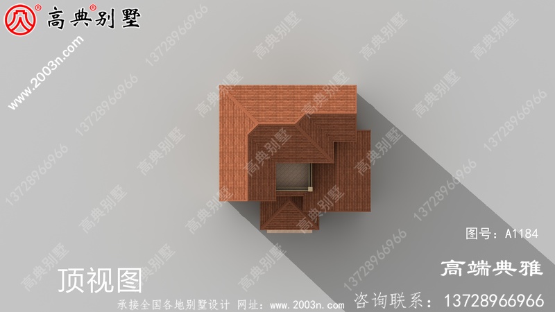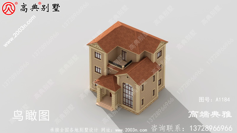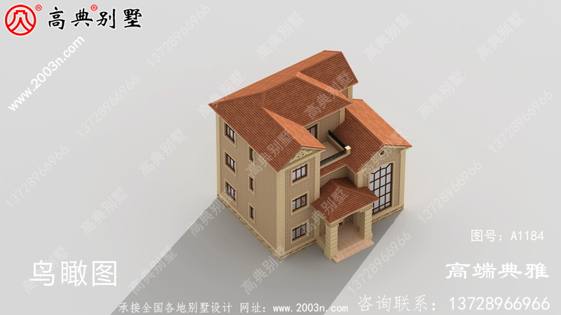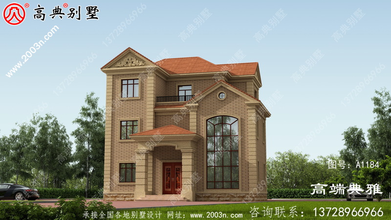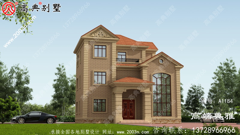 A1184号别墅外墙主要材料:水泥构件、真石漆、平板瓦、劈开砖