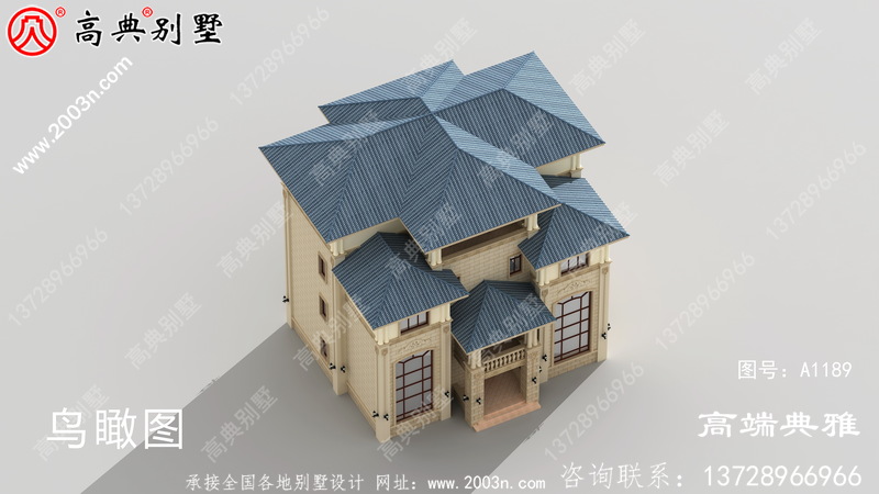 A1189号别墅外墙主要材料:水泥构件、真石漆、310X310S瓦、外墙砖、荔枝面黄锈石